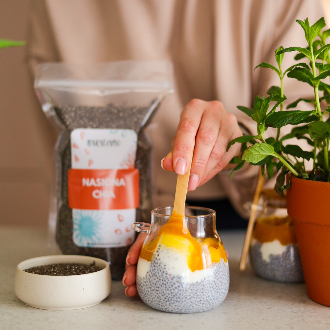Korzyści płynące z jedzenia nasion Chia można mnożyć – lista niemal nie ma końca! A skoro ziarenka są małe, bez smaku i zupełnie niepozorne – nie ma żadnych powodów, by nie mieć ich w swojej kuchni!